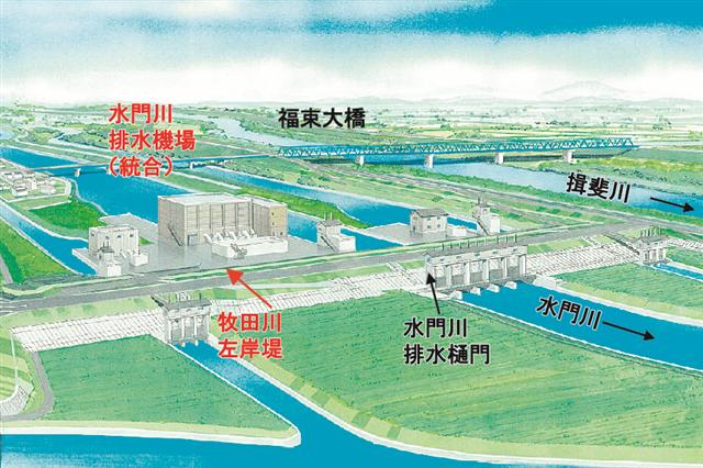 ■河川/用地取得に着手/新水門川排水機場  新丸山ダム建設事業イメージ。i-Construction…