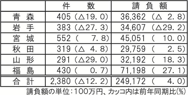 福島が請負額3割増/4月6県公共工事/東保証宮城まとめ