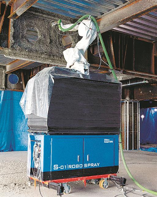 1日の生産性3割向上/清水建設の耐火被覆吹付ロボット