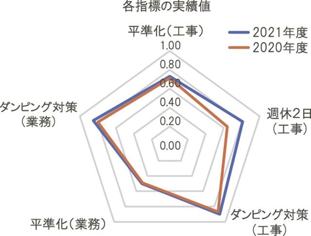 新・全国統一指標の21年度実績値/週休2日工事実施状況が改善