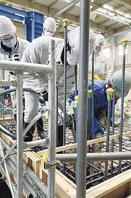 RC造の躯体モデル完成/能開大3年生が鉄筋コンクリ実習