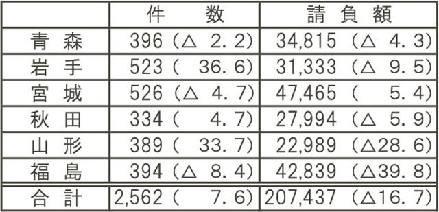 福島が請負額4割減/4月6県公共工事/東保証