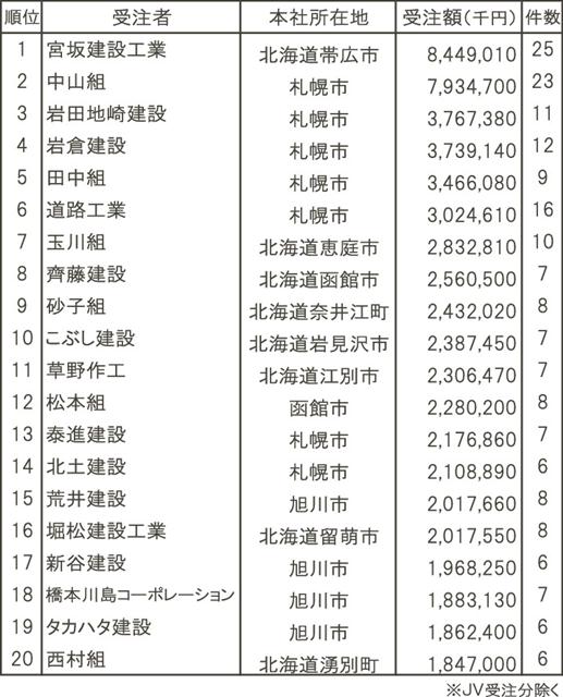 最高額は三笠ぽんべつダム堤体1期/宮坂建設工業が首位/北海道開発局の22年度発注工事