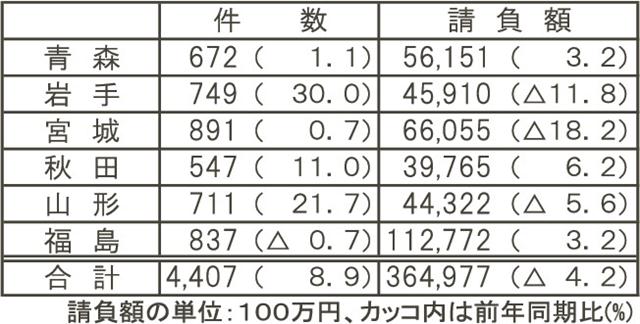 東保証5月末6県公共工事/件数増も金額減/岩手と宮城で2桁減