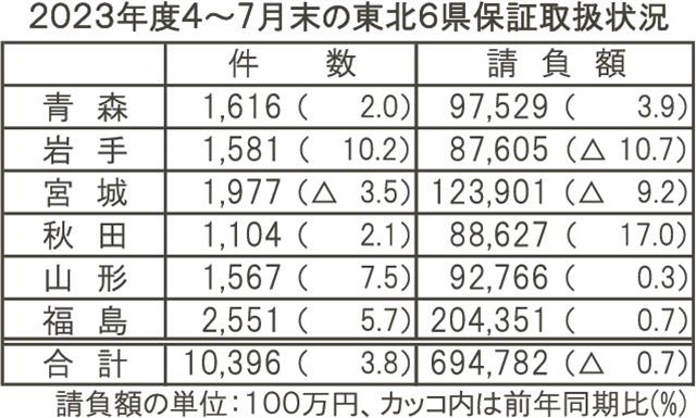 東保証7月末6県公共工事/件数増も金額減少/秋田が2桁伸び示す