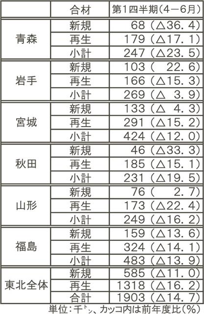 日合協東北の上期製造数量/過去10年で最少/200万t下回る