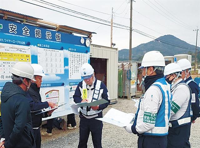 御船町造成工事安衛活動を確認/三井住建道路の蓮井社長が視察