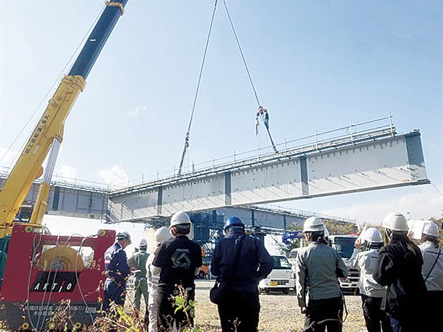 高知土木女子が鋼橋架設を見学/四国整備局土佐国道