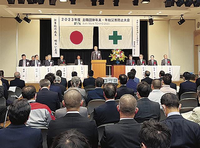 年末・年始災害防止大会/災害ゼロへ団結/専門工事業主職5団体
