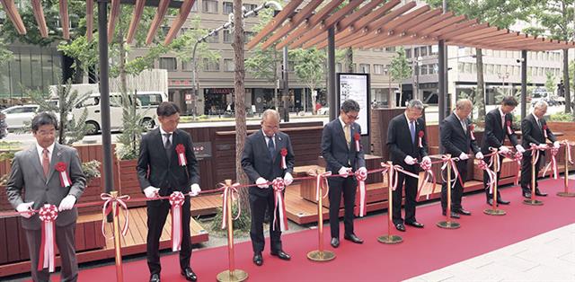御堂筋に新歩行者空間/「いちょうテラス高麗橋」完成/まちづくりNWと大阪市