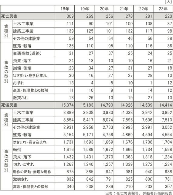 【23年建設労災/死亡223人 3年ぶり減/死傷も2年連続減、過去最少】  厚生労働省は、2023年…