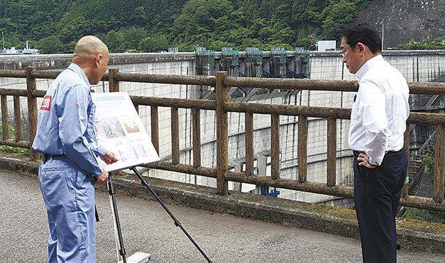 佐藤局長から説明を受ける岸田首相(右)         (中部地方整備局提供)