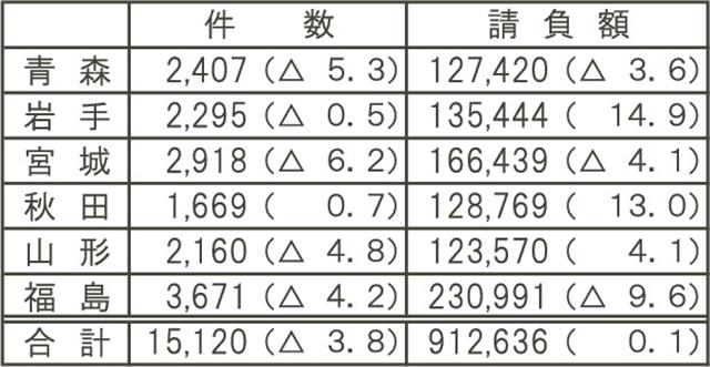 微増の9126億円/岩手と秋田は2桁増/東北6県、東保証上期請負額