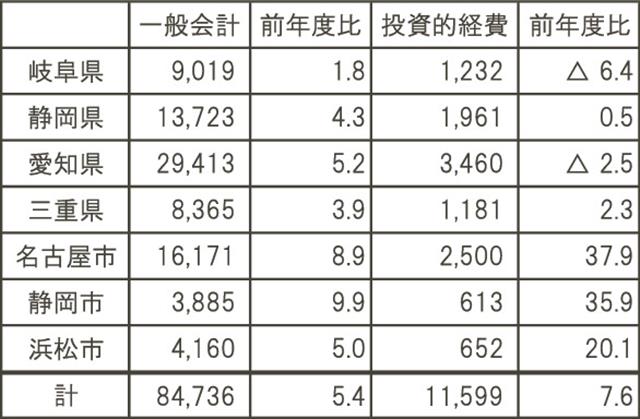 投資的経費7.6%増/名古屋市、静岡市は大幅増/4県3政令市予算案まとめ