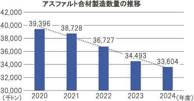 日合協の24年度アス合材製造数量/過去最低の3300万t台/歯止め掛からず4年連続減