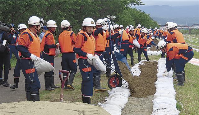 北陸整備局ら/姫川・関川総合水防演習/69団体1500人が連携強化