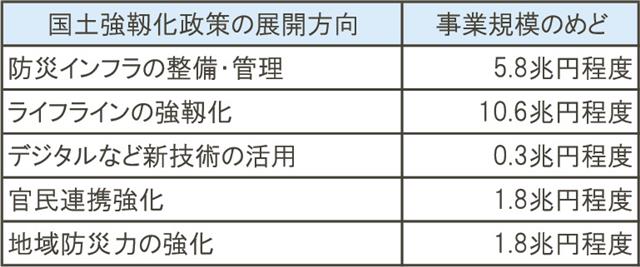 “発射台”は20.3兆円/毎年度さらに積み上げ/国土強靱化実施中計案
