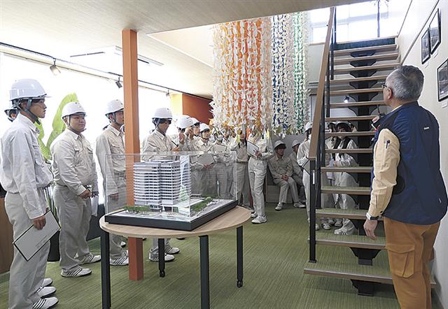 大林JVの仙台市役所本庁舎建築現場/快適な事務所に驚き/古川工高生36人が見学