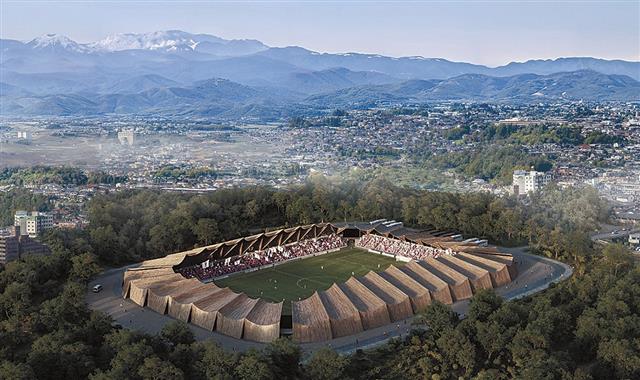 完全木造&循環型木造に/福島ユナイテッドFC新スタジアム計画案/スポーツX、VUILD