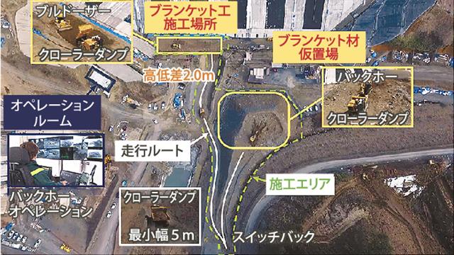 大成建設 南摩ダムで実証/複数建機が無人施工/他社製機とも協調運転