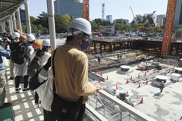 仙台市役所本庁舎建築現場/親子約90人が見学/施工は大林JV