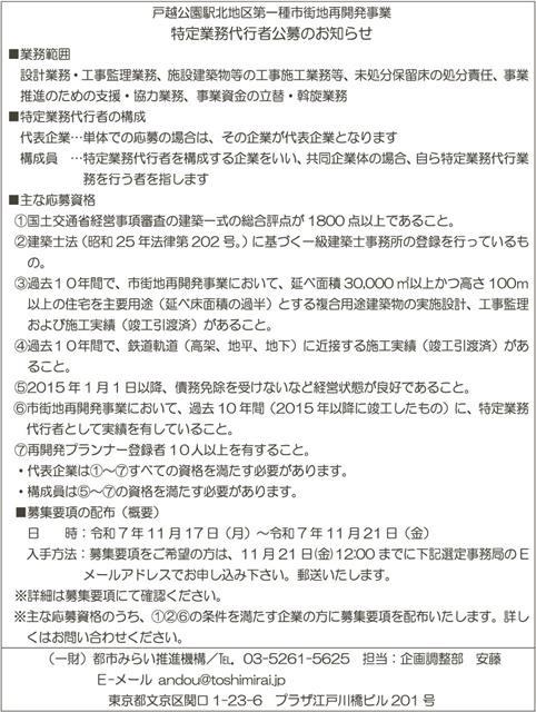 特定業務代行を公募/11月21日まで要項配布/戸越公園駅北地区再開発