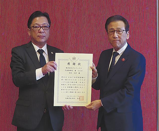 札幌市から感謝状/STARTUP HOKKAIDOこども本の森札幌・北大支援に寄付/ボルテックス
