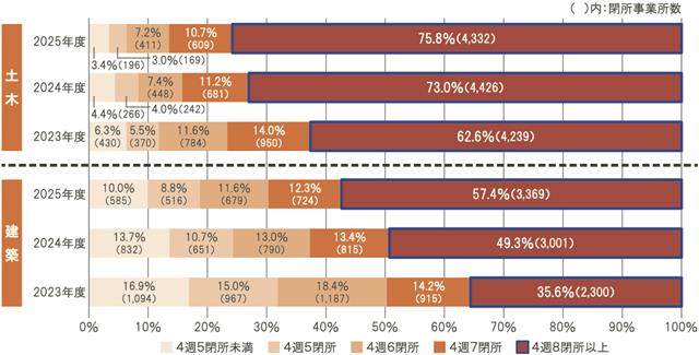 4週8閉所 土木76%、建築57%/新規受注案件で飛躍的進展/日建連
