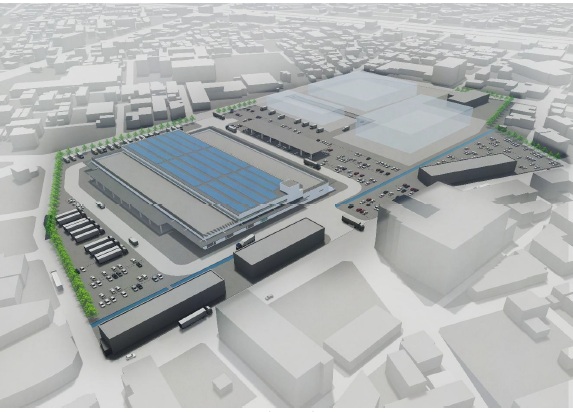 青果棟の規模は、S造2階建て延べ3万8500平方メートル。関連棟や管理棟、立体駐車場も整備する。建設地は湊3丁目。