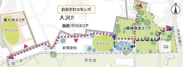 東京都三鷹市は、「国立天文台周辺地域土地利用整備計画策定に向けた基本的な考え方」を公表した。天文台北側ゾーンを第七中エリア、施設づくりエリア、緑地保全エリアに分け、一体的な利用を促進する。施設づくりエリアの東側にグラウンドや駐車場、西側に新築建物を設置。同ゾーンの西側は、既存の第七中学校も含め施設を集約させる。 天文台の北側ゾーンには、羽沢小学校(大沢4-9-1)や大沢台小学校(大沢2-6-18)を移転し、隣接の第七中を含めた義務教育学校を設置する。学童保育所や西部図書館(大沢2-6-47)も移転させ、教育環境や交流の場などとなる地域の共有地『おおさわコモンズ』を創出する。
