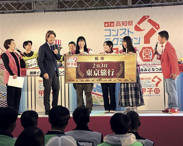 タレントのヒロミさんを大会ゲストに招き、生徒保護者や学校関係者、県内企業など参加者約300人とともに大会を盛り上げた。高知工業高等専門学校の女子3人組「ななみとなつみ」が3時間に及ぶ熱戦を制し、初代王者に輝いた。