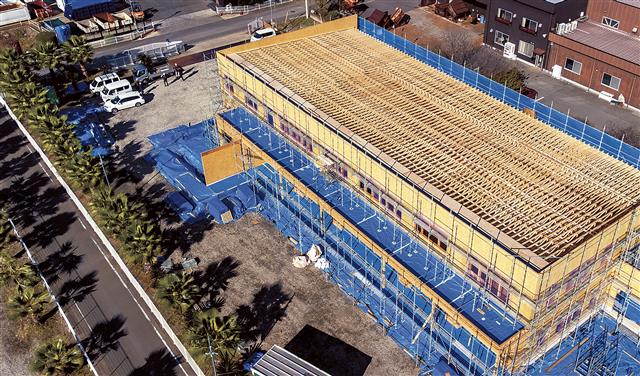 脱着式のコンテナを製造・販売する白川鉄工(群馬県伊勢崎市、白川正一代表取締役)が、新たな本社事務所をツーバイフォー(2×4)の木造で建設している。2×4の高気密・高断熱に強い信念を持つマイスターハウス(群馬県高崎市)の山口康雄代表取締役の情熱が、「快適」な職場環境を次世代に残したいという白川代表取締役の思いと共鳴し、新たな木造非住宅建築プロジェクトへとつながった。