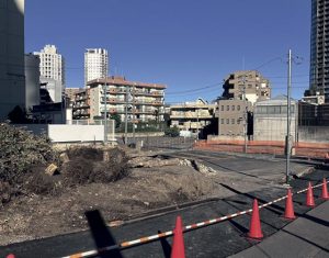 26年1月からは、大林組の施工で「(仮称)港区赤坂九丁目計画に伴う地下解体工事」が始まる。建物の解体が終わった▽旧ステリーナ教会▽旧アートプラザビル▽旧YCビル–の地下部分総延べ1038㎡を解体し、同年12月中旬に完了する予定だ。