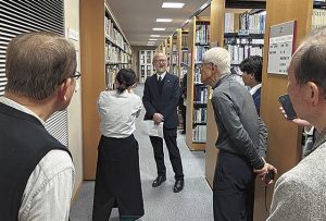 東京・築地の浜離宮建設プラザの建設産業図書館で3月27日まで開催している「生誕100年(没後25年)記念展示 古川修の建設業の世界-建設業研究と産業政策への貢献」で、展示を企画した樺島徹自転車駐車場整備センター理事長のギャラリートークが開かれた=写真。