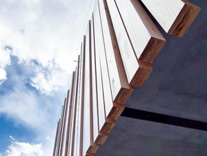 均整の取れたシンプルなシルエットの裏には、美しく見せるための工夫があるといい、高畑氏は「木は年月とともに反りやゆがみが発生するため、それを見越し、あらかじめ隣り合うルーバー同士に凹凸を付け、時間が経っても暴れて見えないようにした」と解説する。