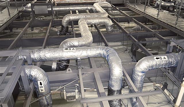 見学歩廊を設け、天井裏の設備や配管を学べるようにした