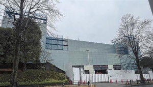 工事の名称は「丸紅多摩研修センター解体工事」。解体している建物の規模は、SRC・RC・S造地下1階地上5階建て塔屋1層延べ2万2777㎡。解体対象の既存建物「丸紅多摩研修センター」は1994年に竣工した。