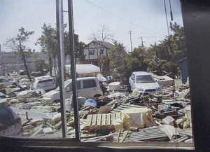 震災後3日目には社内情報伝達・収集のために仙台市中心部にある東北支店(ここは2日後に停電解消)に自転車で片道2時間ほどかけて向かいました。4日目にようやく赴任地である石巻の事務所にたどり着くことができましたが、1.2m程水没し、さまざまな流出物が押し寄せて来ており立ち入れないので、内陸部にあり津波被害を受けなかった合材製造所を拠点に活動を始めました。